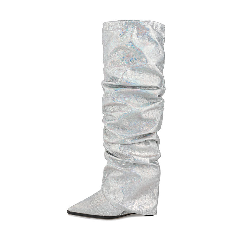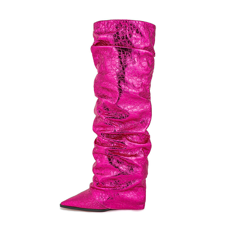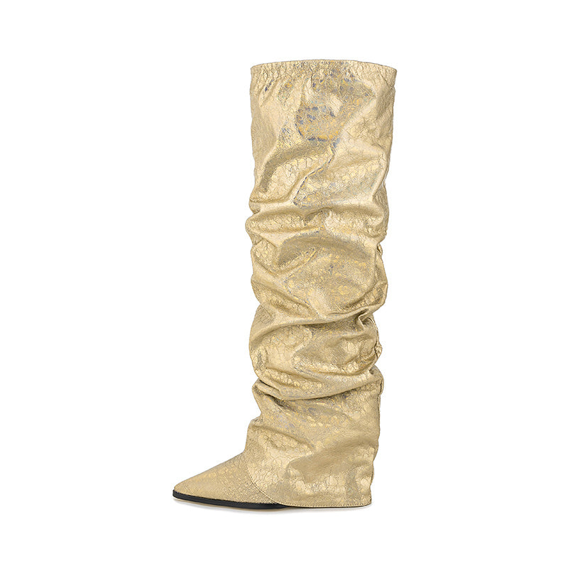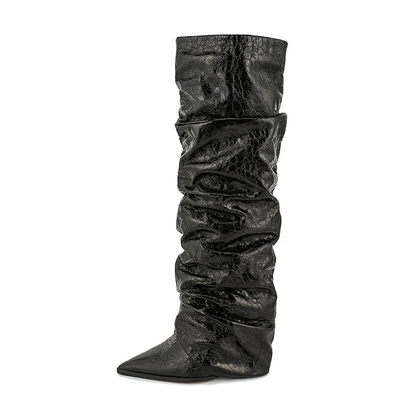 Women's Pointed Stitching Sleeve Flanging Pleated High Leg Boot